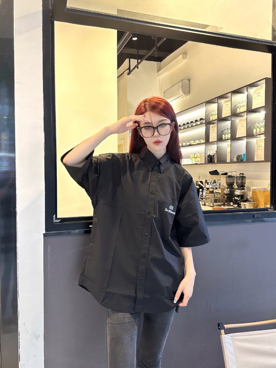 Esta sofisticada camisa negra de Balenciaga forma parte de su campaña «Be Different», que enfatiza la individualidad y el estilo. Presenta un elegante diseño abotonado con cuello puntiagudo y mangas cortas, lo que la hace ideal tanto para ocasiones informales como formales. El bolsillo izquierdo luce el logo de la campaña, «Be different», en un sutil estampado a contraste. Esta prenda combina la sastrería clásica con un mensaje moderno, perfecta para quienes buscan destacar con sus elecciones de moda.
