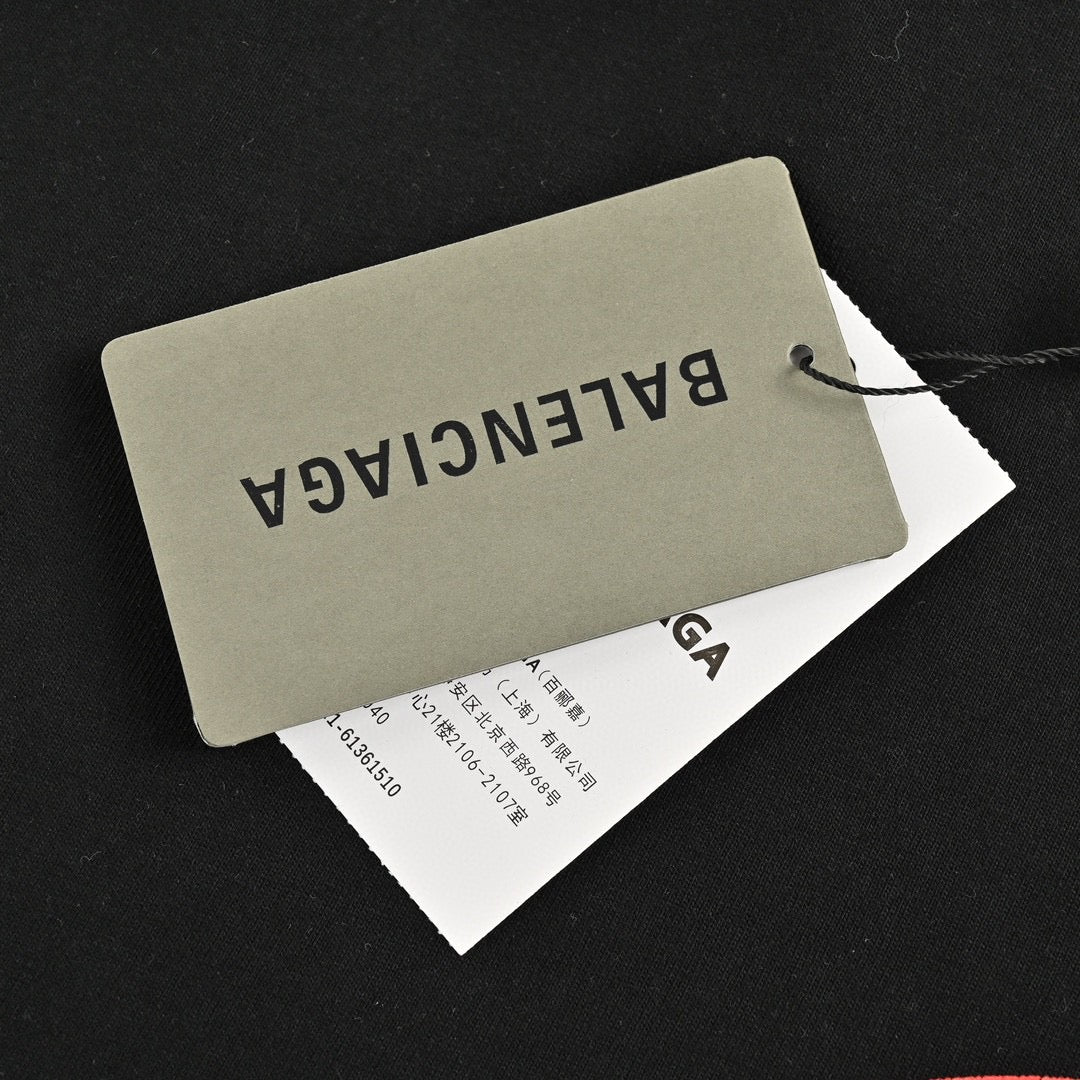 Esta camiseta negra de Balenciaga luce un llamativo logo gótico rojo en la parte delantera y las mangas. Confeccionada en algodón de alta calidad, garantiza un ajuste cómodo y transpirable. Su diseño de manga corta y cuello redondo clásico le confiere un estilo atemporal, mientras que el estampado gráfico le aporta un toque moderno y atrevido. Esta camiseta es perfecta para quienes buscan un look casual con personalidad, y combina a la perfección con vaqueros o shorts para un estilo actual y sofisticado.