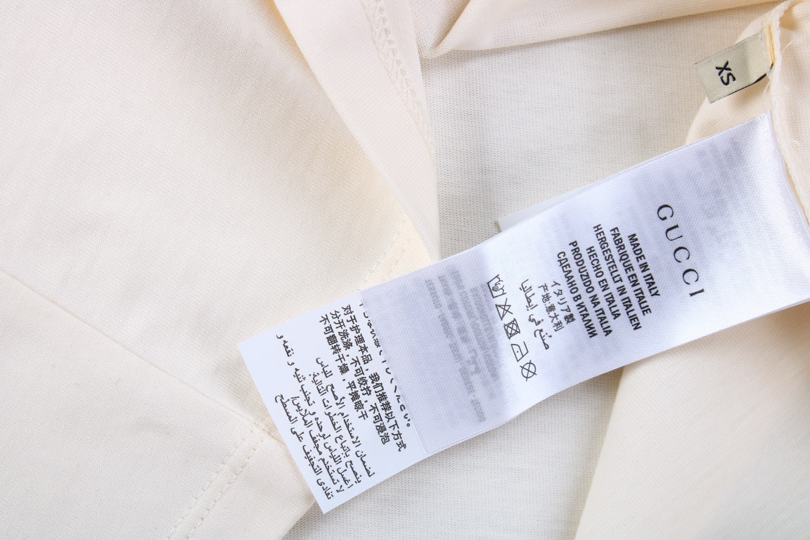 Esta exclusiva camiseta de Gucci luce un encantador estampado de un perro con un arnés rosa brillante de Gucci sobre un suave fondo crema. El diseño, llamativo y con un toque de estilo desenfadado, es ideal para quienes buscan combinar su sentido de la moda con un aire divertido y original. Esta camiseta es perfecta para salidas informales donde lo importante es lucir un estilo divertido y a la moda.
