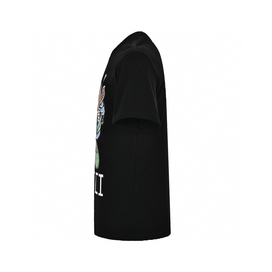 Esta camiseta de Gucci luce un vibrante estampado de dragón en el frente. Su colorido diseño incluye diversas tonalidades de verde, azul y rojo, creando un look llamativo y audaz. La camiseta es negra con el icónico logo de Gucci en un lugar destacado. Perfecta para marcar tendencia.