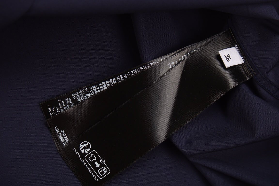 Dans un bleu marine profond , il arbore le logo emblématique de Balenciaga subtilement placé sur le tissu , créant un look raffiné et affirmé . La fermeture classique à boutons, le col pointu et les poignets tailleur rehaussent sa silhouette polyvalente , le rendant parfait pour des tenues décontractées et semi-formelles .