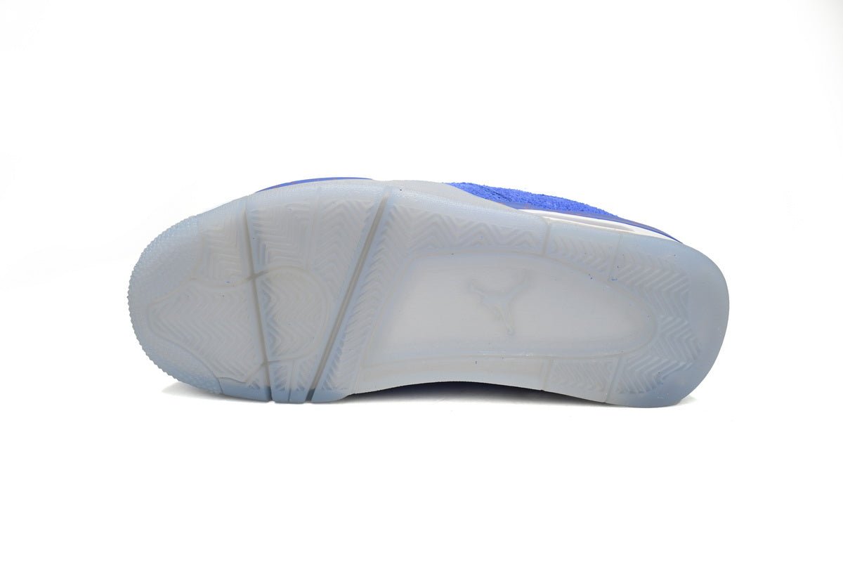 The upper of the Air Jordan 4 Retro Florida features a mix of premium white leather and suede, providing a luxurious and durable foundation. It is accentuated with striking orange and blue highlights, reflecting Florida s bright and energetic vibe. The orange pops on the eyelets, lace wings, and midsole, while blue accents are featured on the heel tab and flight tag on the tongue, creating a dynamic and eye-catching contrast.