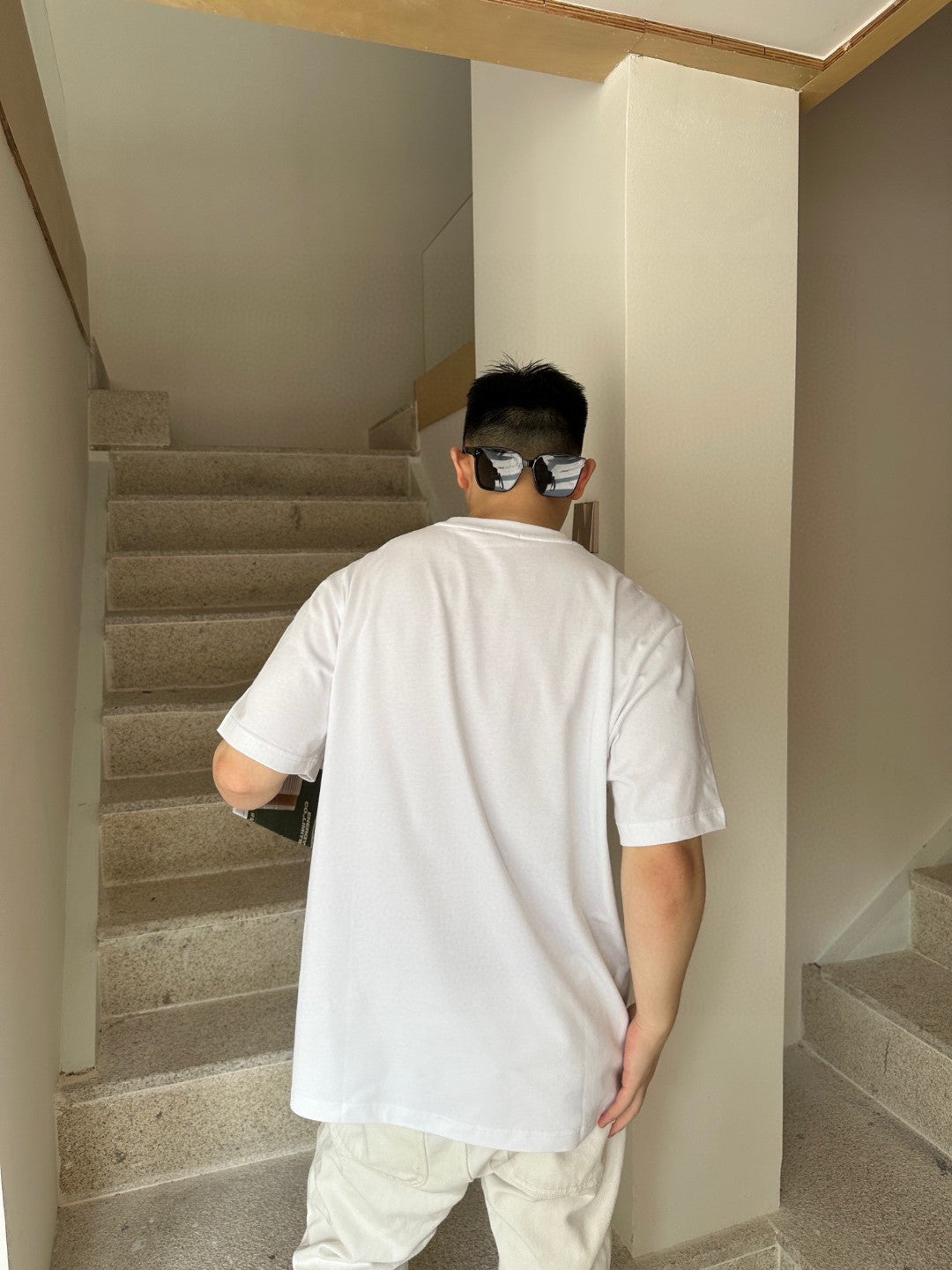 This Chanel t-shirt features a classic white design with a bold text graphic on the front. The graphic includes the brand name 'Chanel' in red, '31 Rue Cambon' in a mix of black and gold, and 'Paris' in red. The iconic Chanel logo is placed in the center, adding a touch of sophistication. Ideal for a chic, everyday look.