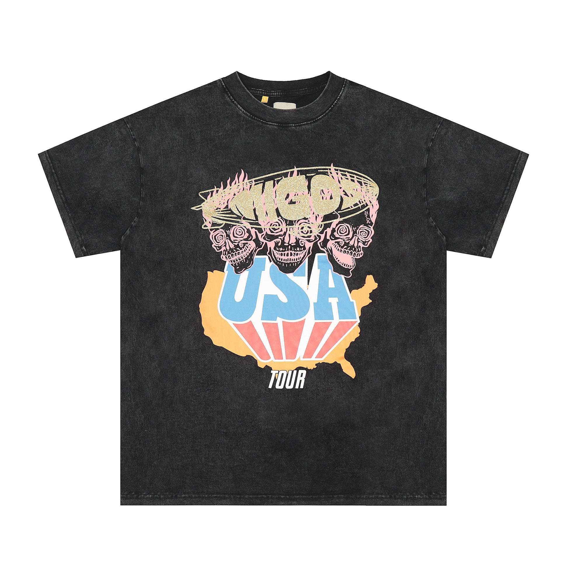 The t-shirt is designed for a relaxed fit, offering ease of movement and a laid-back vibe. The crew neckline and short sleeves maintain a timeless look, making it easy to pair with jeans, shorts, or even layered under a jacket for cooler weather. Whether you're a music enthusiast or a streetwear connoisseur, the Gallery Dept. "USA Tour" T-Shirt is an ideal choice for expressing your unique style and love for bold, artistic designs.