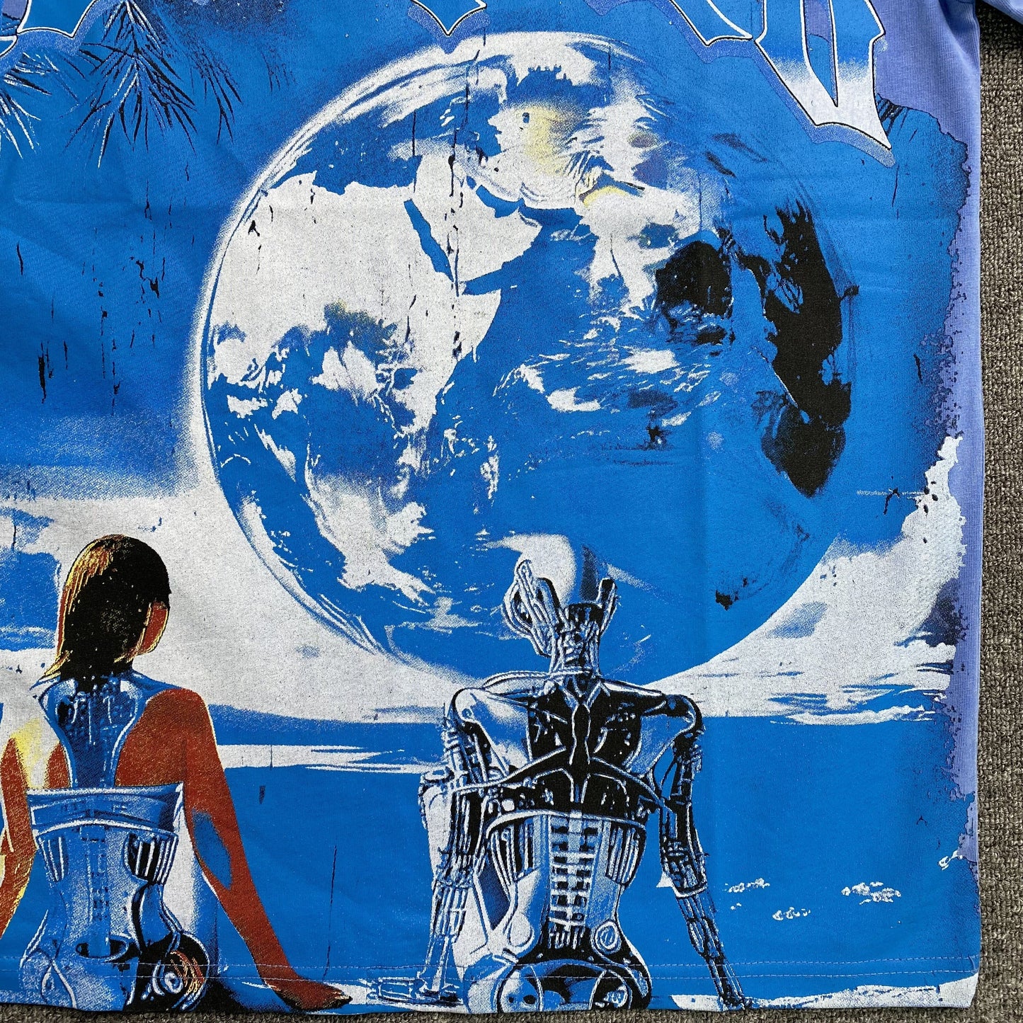 Upgrade your wardrobe with this emotionally charged, thought-provoking tee that merges art, culture, and contemporary streetwear effortlessly. #Godspeed #ArtificialLove #StreetwearCulture #WashedAesthetic