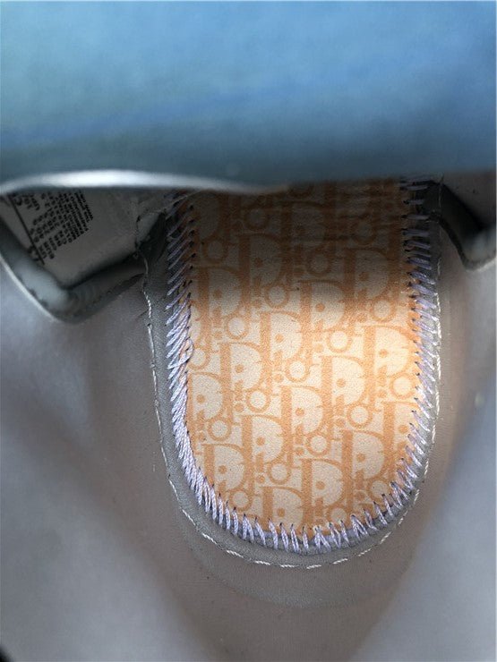 The JORDAN 1 RETRO HIGH x DIOR is characterized by its sophisticated colorway, which typically includes a combination of white, grey, and Dior's signature shades such as Dior Grey and Dior Oblique. This color palette adds an elegant and timeless touch to the sneaker.