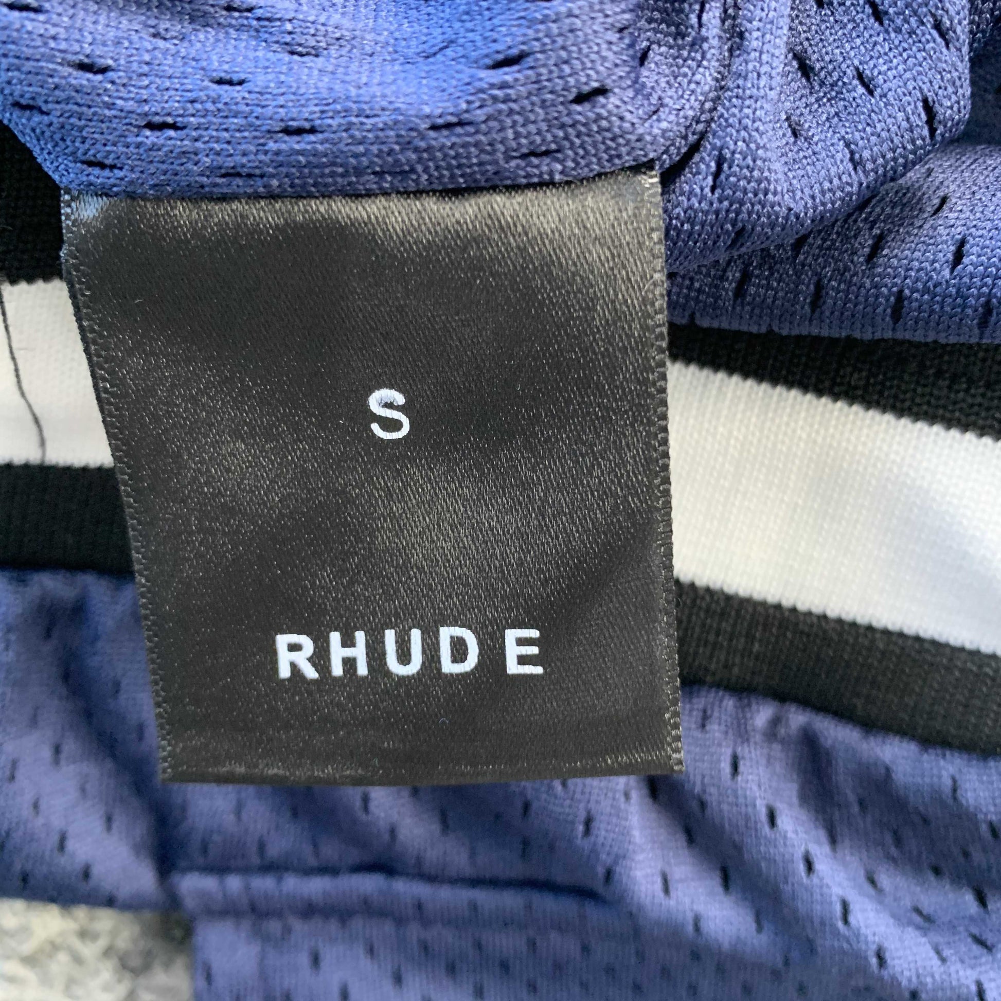 Featuring a deep navy base with the signature Rhude Court logo on the front, these shorts offer a clean, elevated look while maintaining a relaxed, effortless vibe. The elongated drawstrings and elastic waistband ensure a comfortable, adjustable fit, adding to the laid-back West Coast-inspired silhouette.