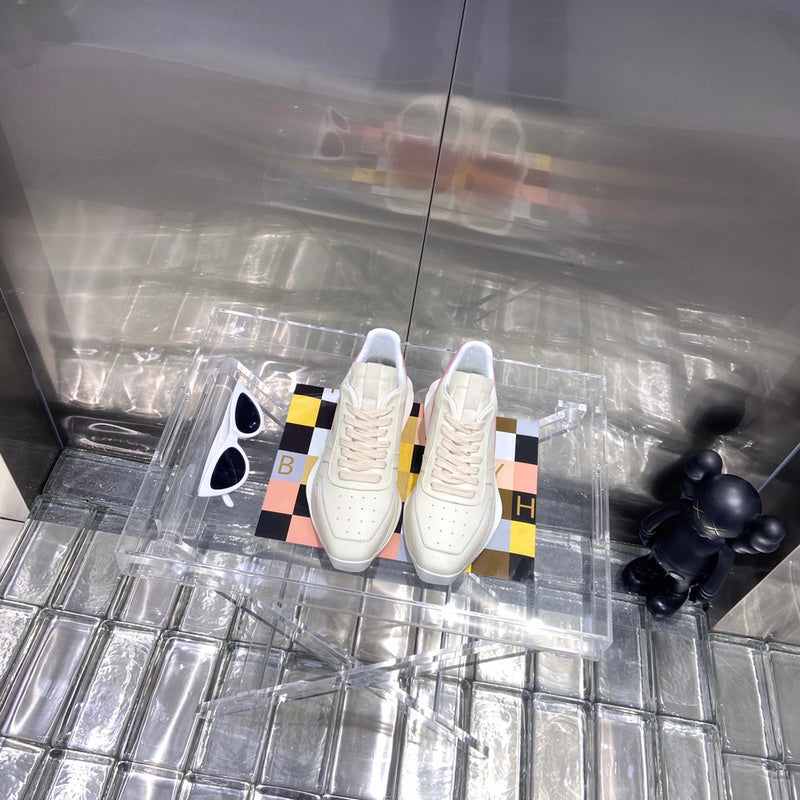 Crafted from high-quality leather, these sneakers promise durability and a luxurious feel. The cream leather upper is smooth and supple, providing both style and comfort. The pink leather accents not only add a pop of color but also highlight the shoe's meticulous craftsmanship. A sturdy rubber sole completes the design, offering excellent traction and support.